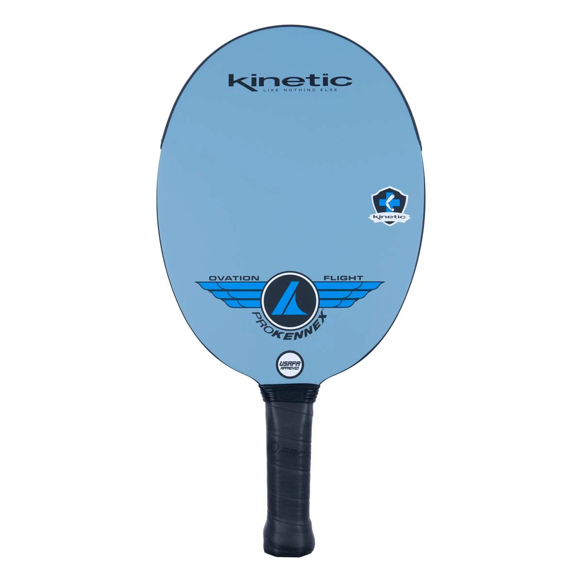 The ProKennex Ovation Flight features a hybrid paddle surface and a poly core. The Ovation Flight has a thin core, and an edgeless design to help provide excellent maneuverability and wind resistance. The combination of all of these features makes the paddle quick in your hand and enhances your reflexes. Increase your touch, feel, kitchen play, and reduce shock with the Kinetic system in the Ovation Flight. The Ovation Flight is the lightest weight ProKennex paddle with a range of 7.3-7.6 oz. And don’t forget, we offer free shipping on all pickleball paddles!