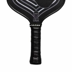 The Vulcan V720MAX Pickleball Paddle Heavyweight Carbon Fiber Pickleball Paddle is a power paddle designed for players who hit drives and smashes with maximum pace and depth! With its larger surface area and sweet spot, it is also one of the most forgiving paddles around the net. Excellent for both doubles and singles! Engineered with remarkable balance so it feels and plays much lighter than its actual mass. Vulcan Max Control Grip at 5”. Made to a popular weight of 8.4 oz. (+/- 0.2). Handcrafted in the USA!