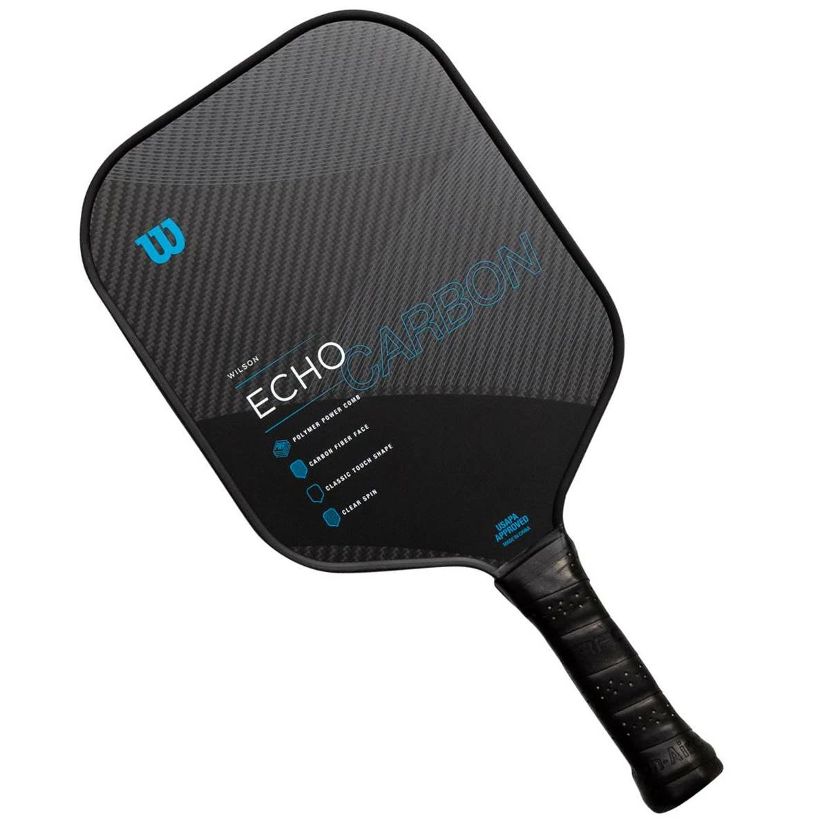 The Wilson Echo Carbon Heavyweight Carbon Fiber Pickleball Paddle is the ultimate feel pickleball paddle! Dominate the kitchen line with the Wilson Echo Carbon Heavyweight Carbon Fiber Pickleball Paddle!